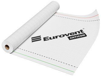 Eurovent Anticon ist eine mehrlagige, nidrige Dampfdiffusion Dachfolie zum Einsatz beim Bau von hinterlüfteten Steildächern direkt unter der Dachdeckung, zum Schutz der Dachbodendämmung.