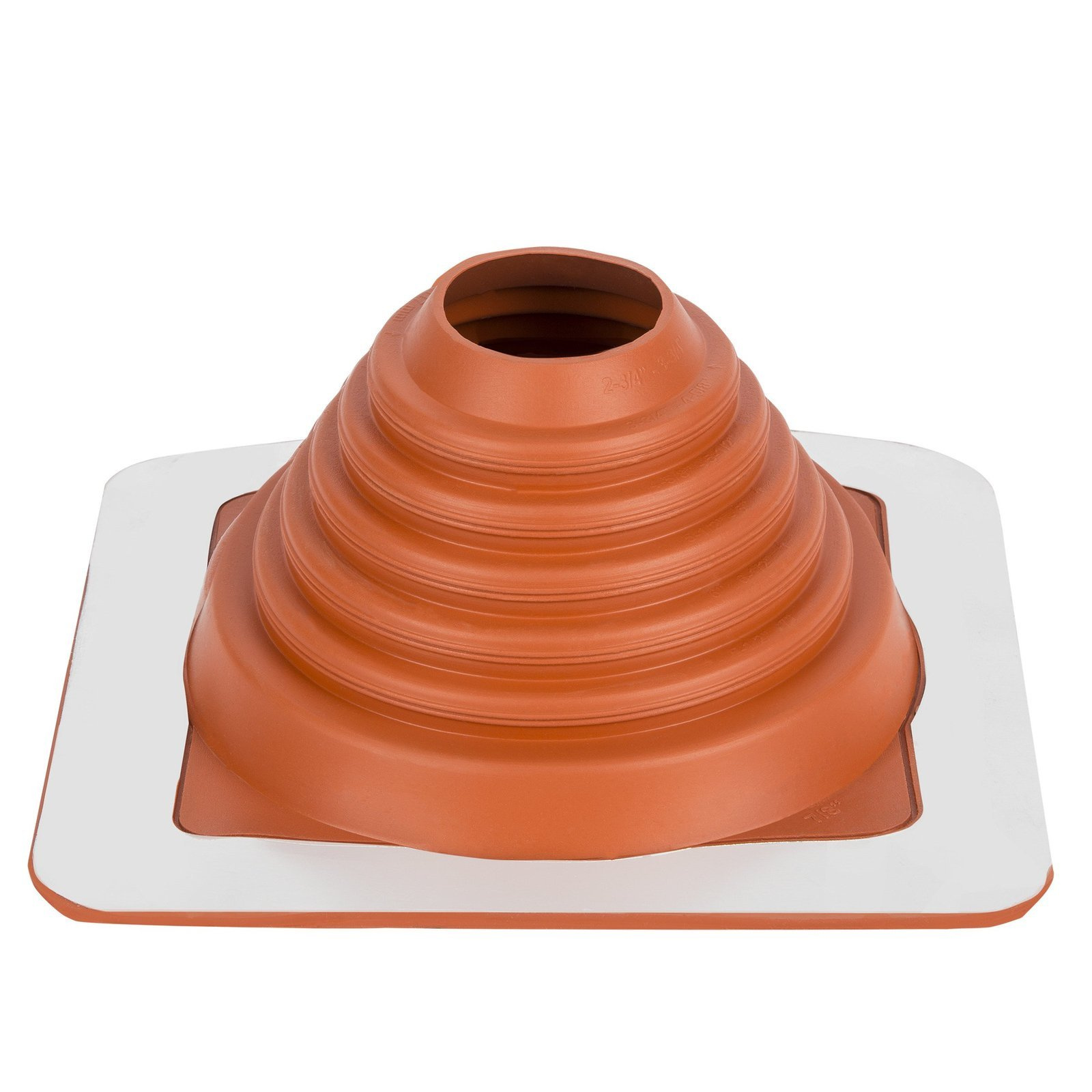 Auf den Gummikegel wurden Linien markiert, die verschiedenen Rohrdurchmessern entsprechen. So kann man den Kragen mit einem Messer oder einer Blechschere einfach anpassen.