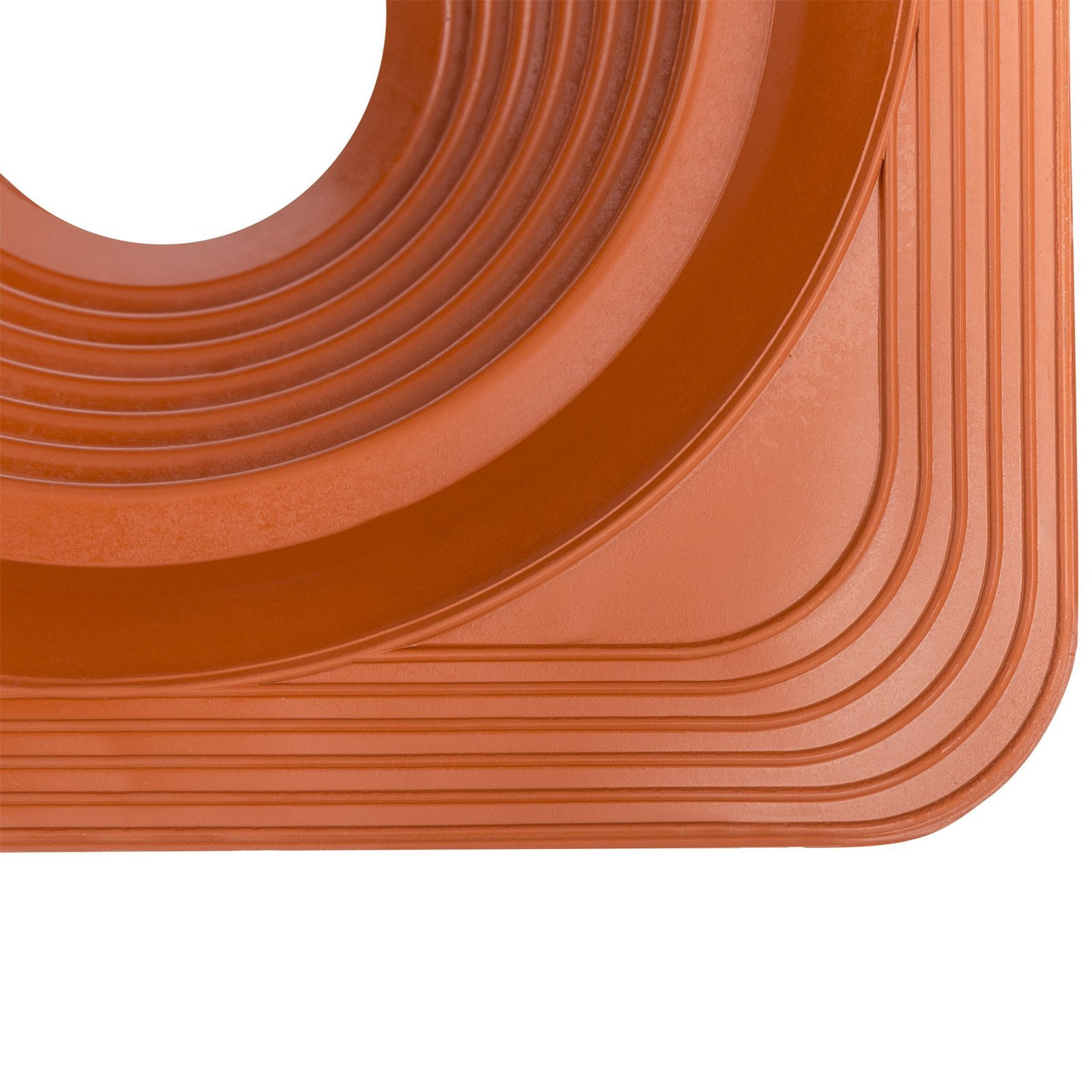 Der flexible Flansch ist bruchfest und lässt Dehn-, Schrumpf- und Schwingbewegungen des Rohres zu. Dank der unteren starken Gummifalte passt das Produkt zu jeder Form der Dacheindeckung.