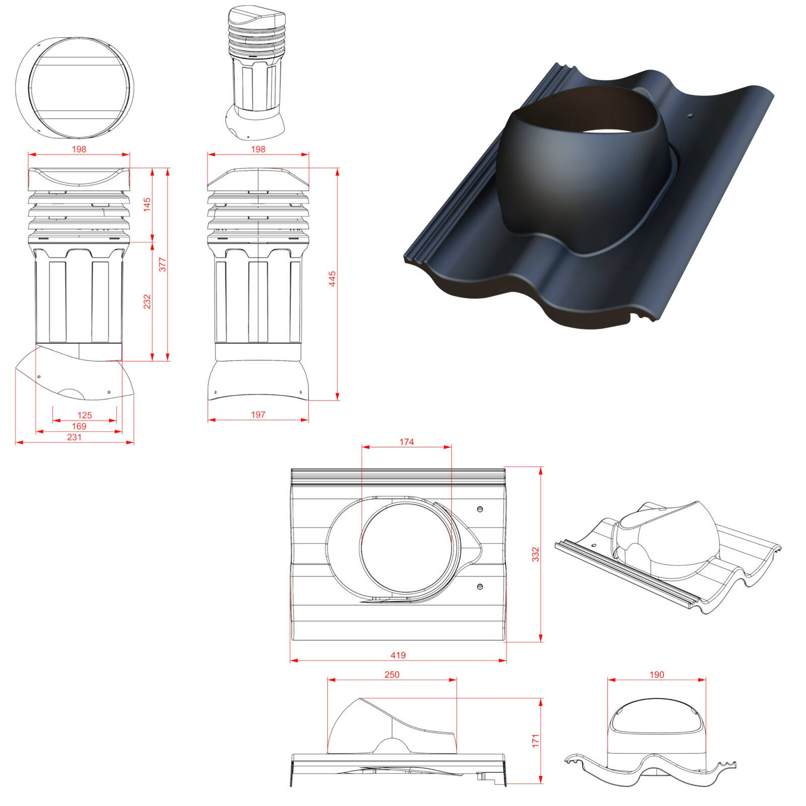 Entlüfterkamin DN125 (125 mm) Dachziegel