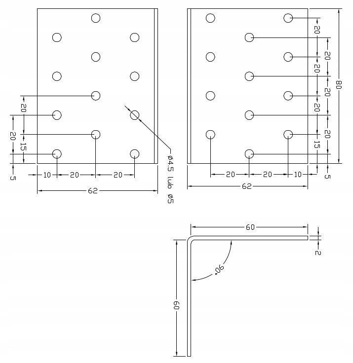 [KP-09] Tischlerei Lochplattenwinkel für Bauwesen Montage 60 x 60 x 80 x 2 mm