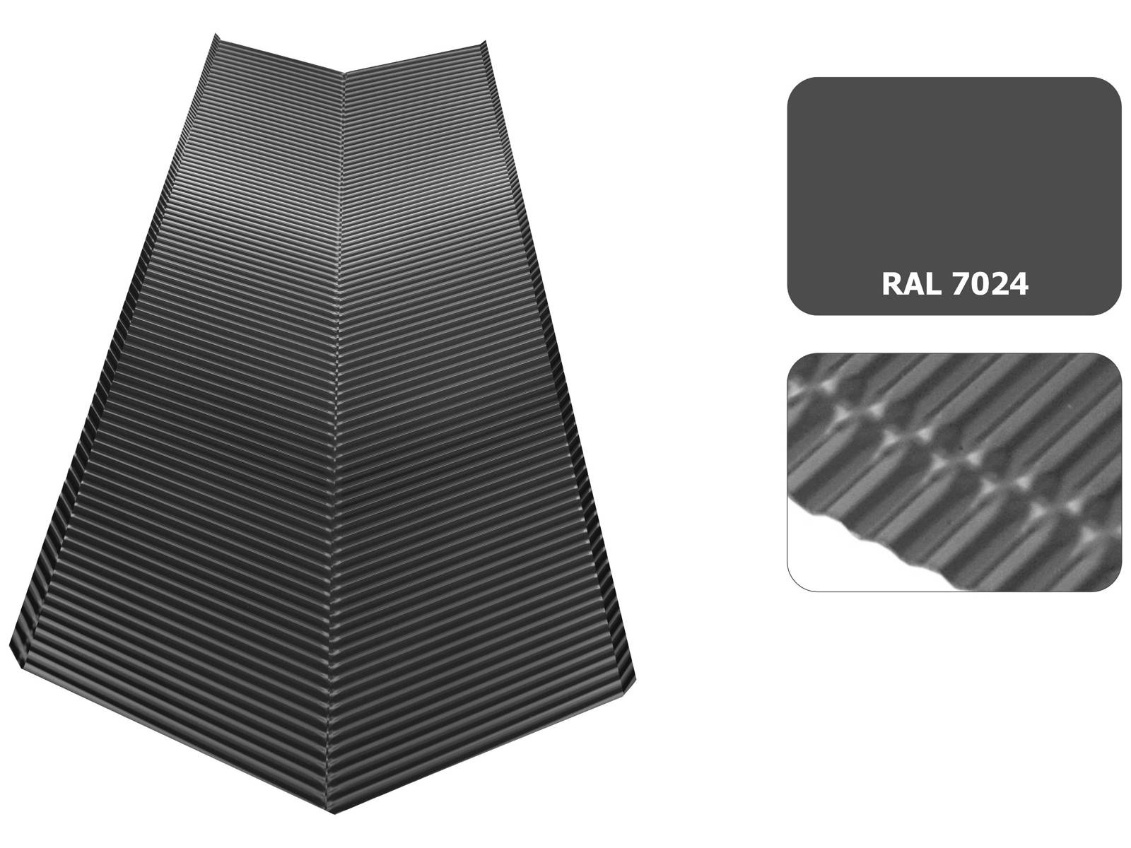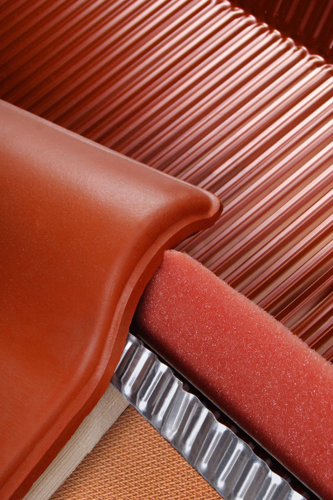 Die tiefe, länglich verlaufende Mittelprofilierung ermöglicht, das Kehlblech direkt bei der Montage am Dach von Hand zu formen. Somit zeichnet sich das Produkt durch 2 wichtige Vorteile aus: die Härte von Aluminiumblech und eine flexible und einfache Montage.