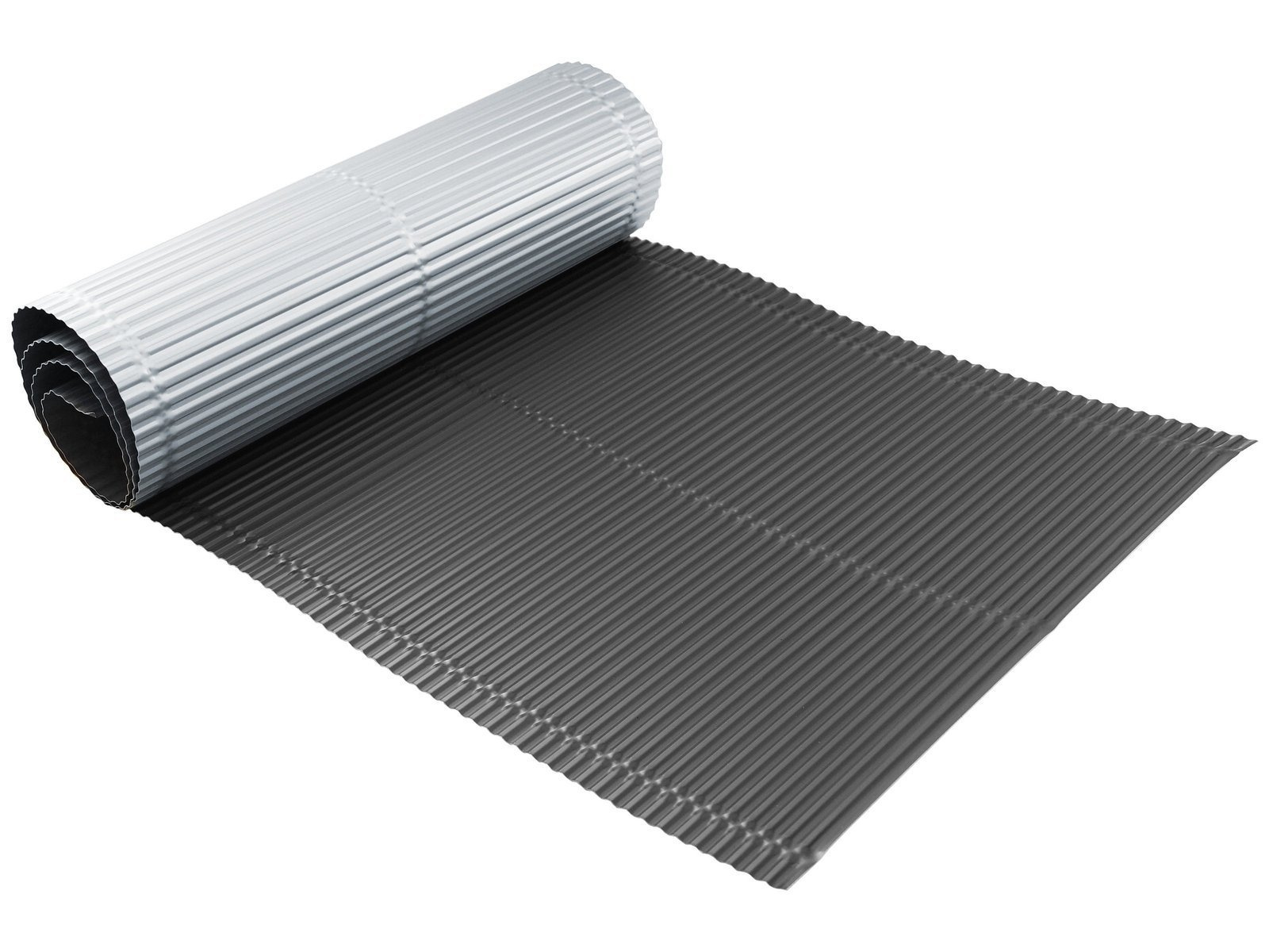 Querprofiliertes Kehlblech aus 0,58 mm starkem Aluminium, mit Polyesterfarbe beschichtet und mit PE-Schutzfolie versehen, die vor Montagebeginn entfernt werden muss.