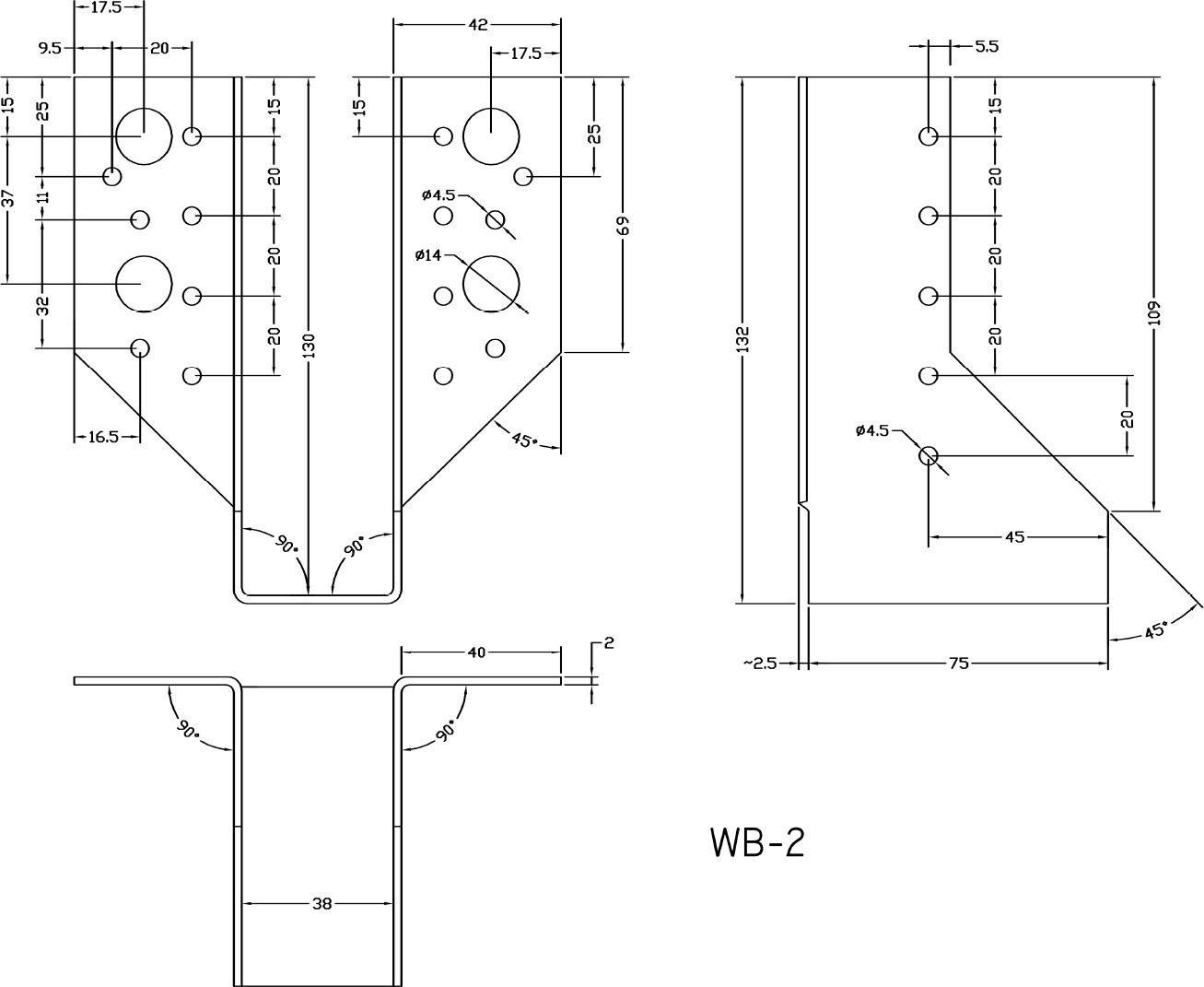• [WB-02] Tischlerei Balkenschuh Außenliegend für Bauwesen Montage 38 x 130 x 75 x 2 mm