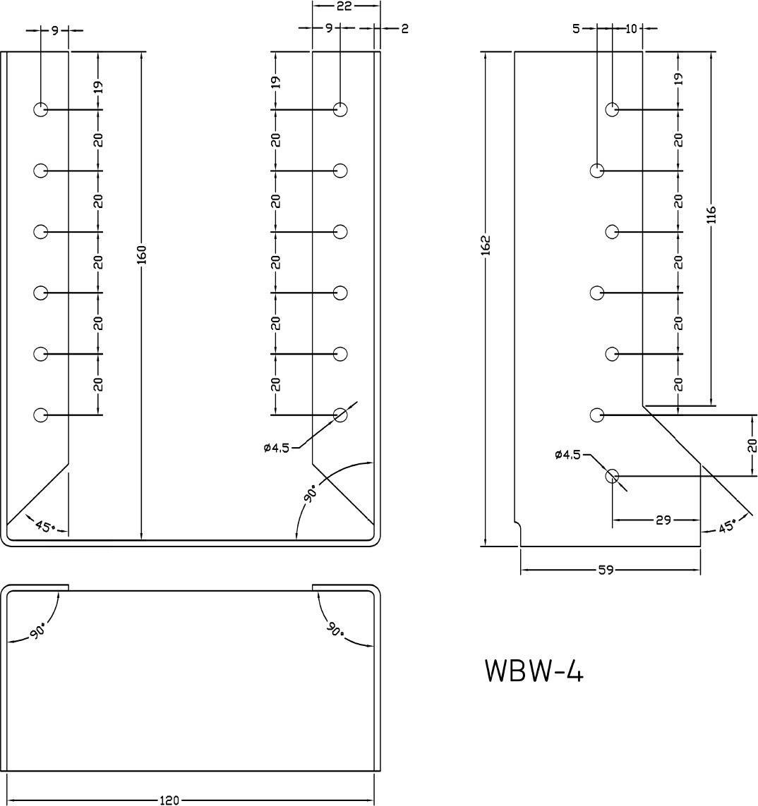[WBW-04] Tischlerei Balkenschuh Innenliegend für Bauwesen Montage 120 x 160 x 60 x 2 mm