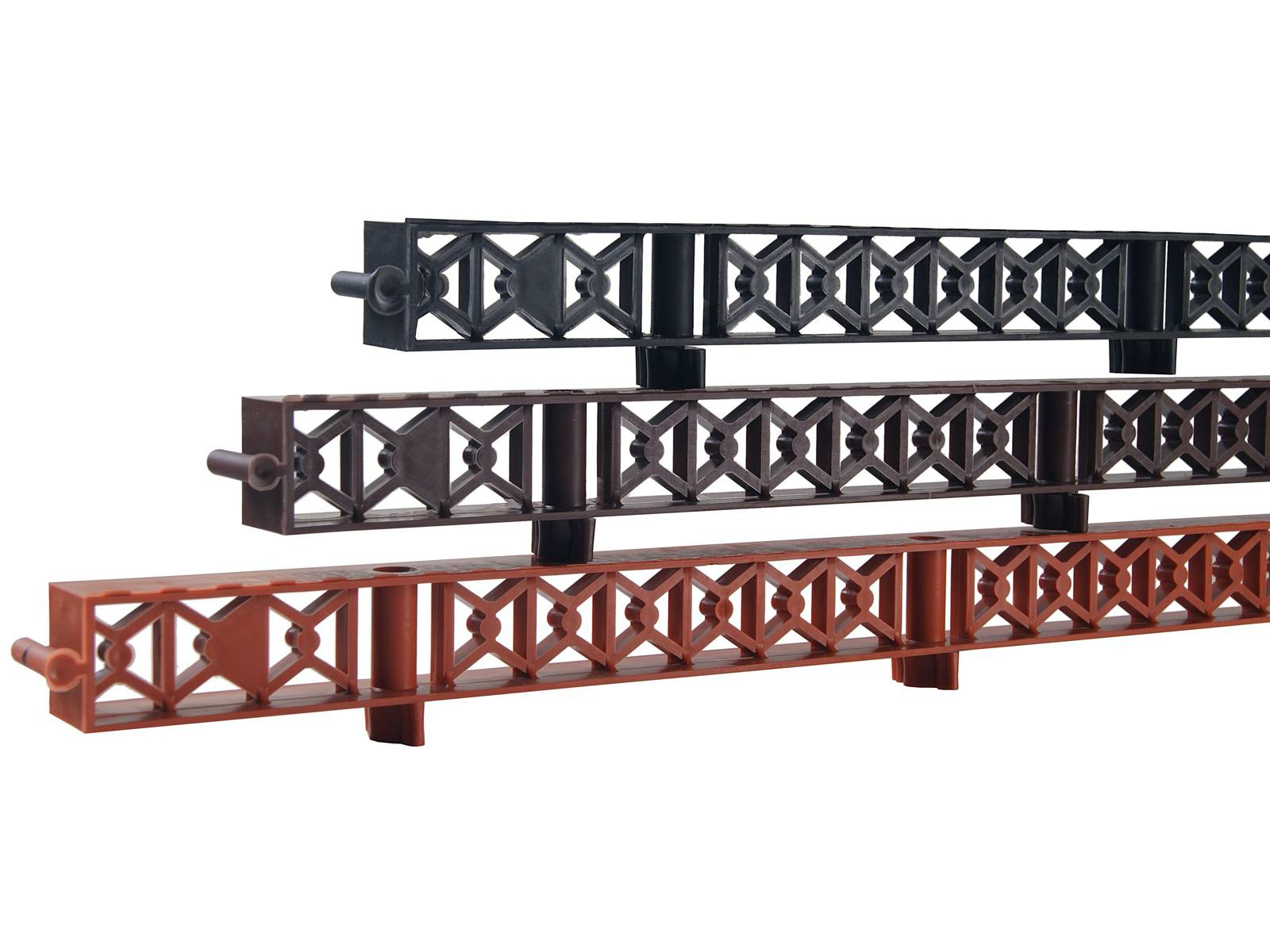 Dieses Trauflüftungselement ersetzt die unterste Traglatte, hält die Dachpfanne fest und leitet Regenwasser von der Unterspannbahn ab.