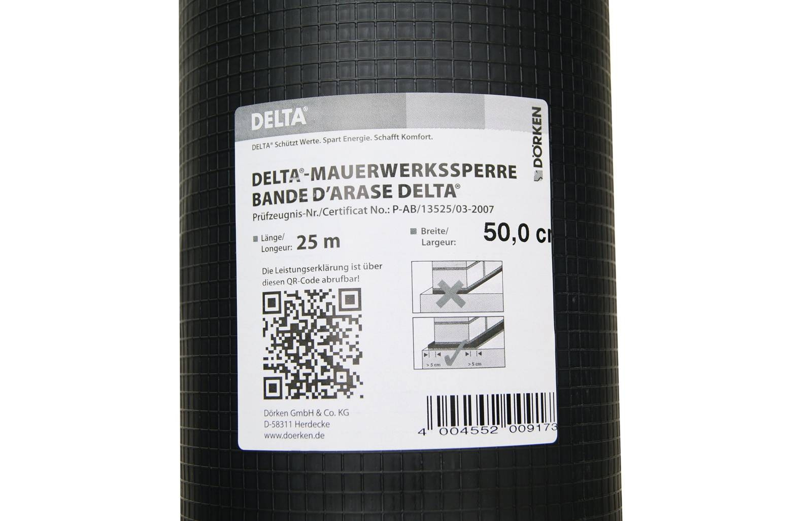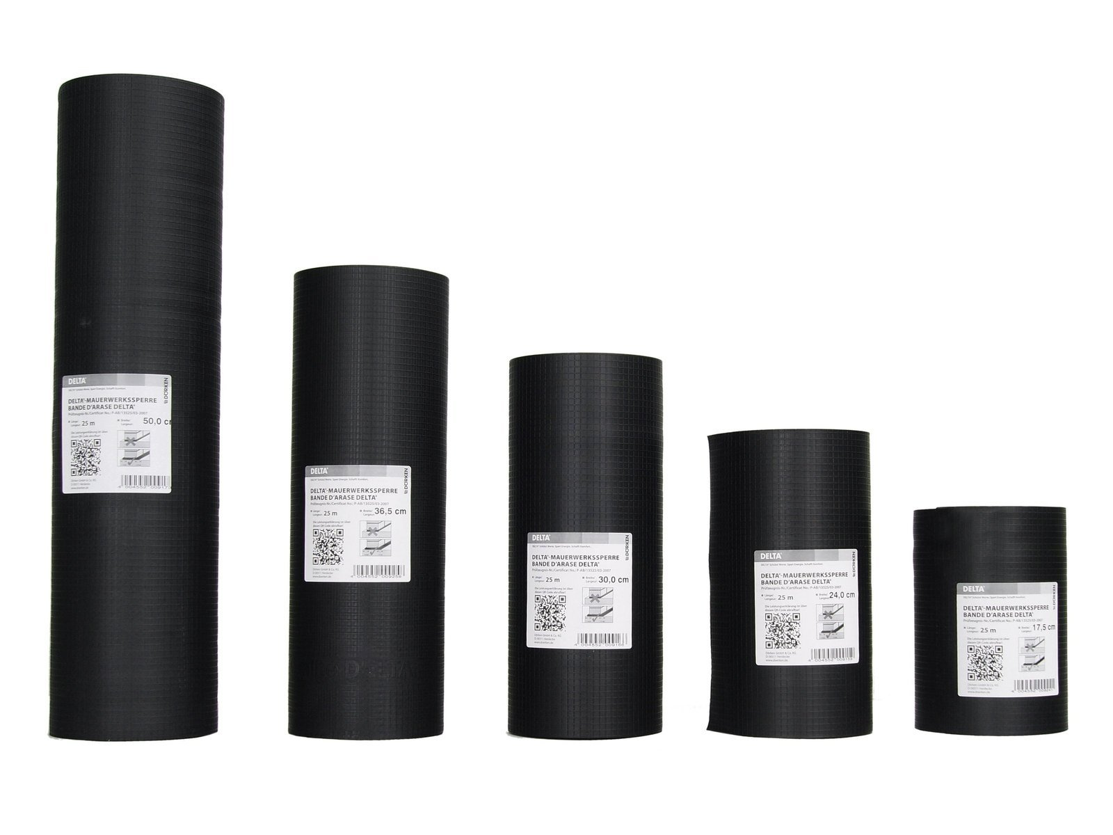 Die DELTA-Mauerwerkssperre wird einlagig verlegt. Dabei sind die Auflageflächen mit Mörtel der Gruppe 2 oder 3 (nach DIN 1053, TL.1) so dick abzugleichen, dass eine möglichst waagerechte Oberfläche ohne Unebenheiten entsteht. Die DELTA-Mauerwerkssperre sollte fest in den Mörtel gepresst werden. Bei Stößen müssen sich die Bahnen um mindestens 20 cm überlappen, um einem optimalen Feuchtigkeitsschutz auf Dauer sicher zu stellen.