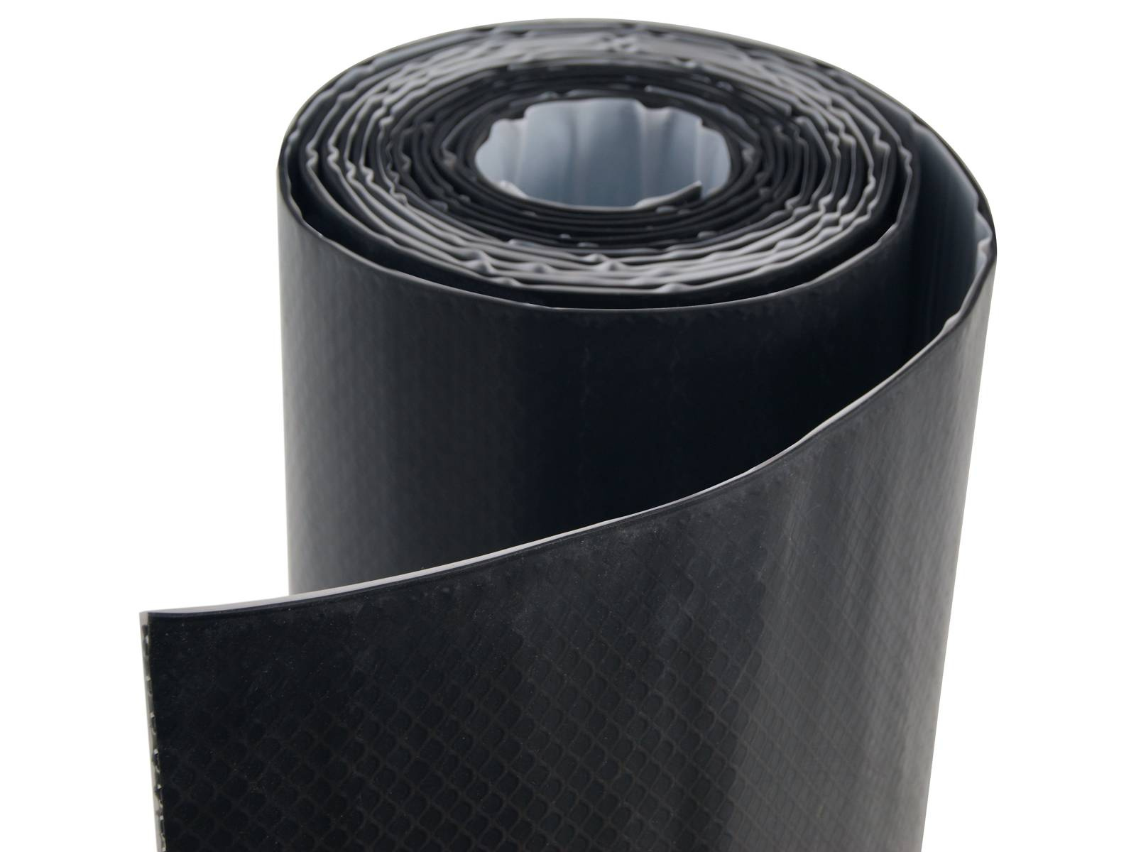 Kaminanschlussband aus armiertes EPDM, vollflächig mit Butylkleber bedeckt.