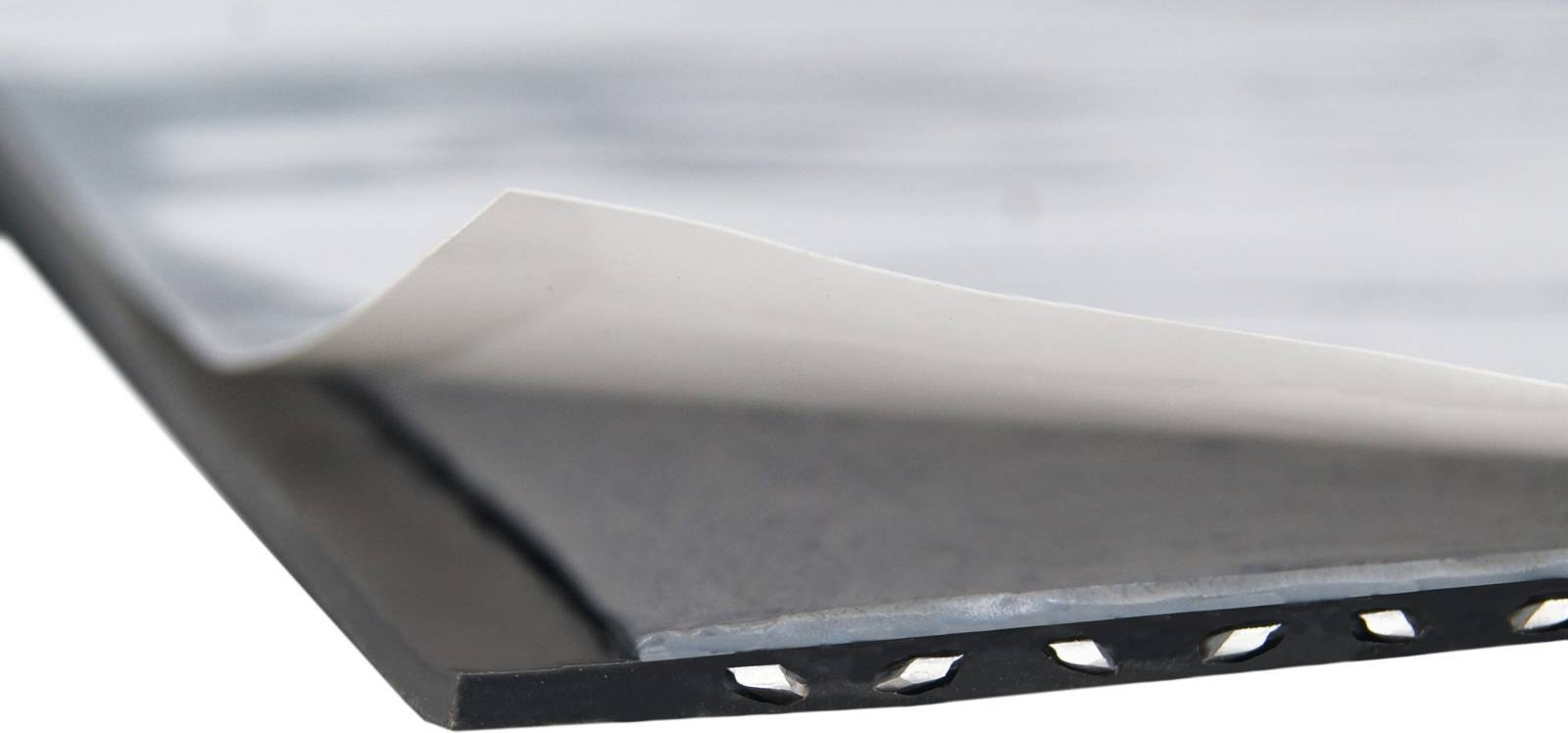 Die Verwendung von graues Butyl höchster Qualität als Klebeschicht, gewährleistet eine dauerhafte und witterungsbeständige Verbindung mit den am häufigsten verwendeten Abdeckungsmaterialien von Schrägdächern.