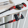 • durch den hochwertigen 2-Komponenten-Kunststoffgriff für sichere Handhabung durch die Schnellverschiebe-Taste zum schnellen Verstellen des Gleitbügels durch die schwenkbare Druckplatte zum perfekten Anpassen an das Werkstück