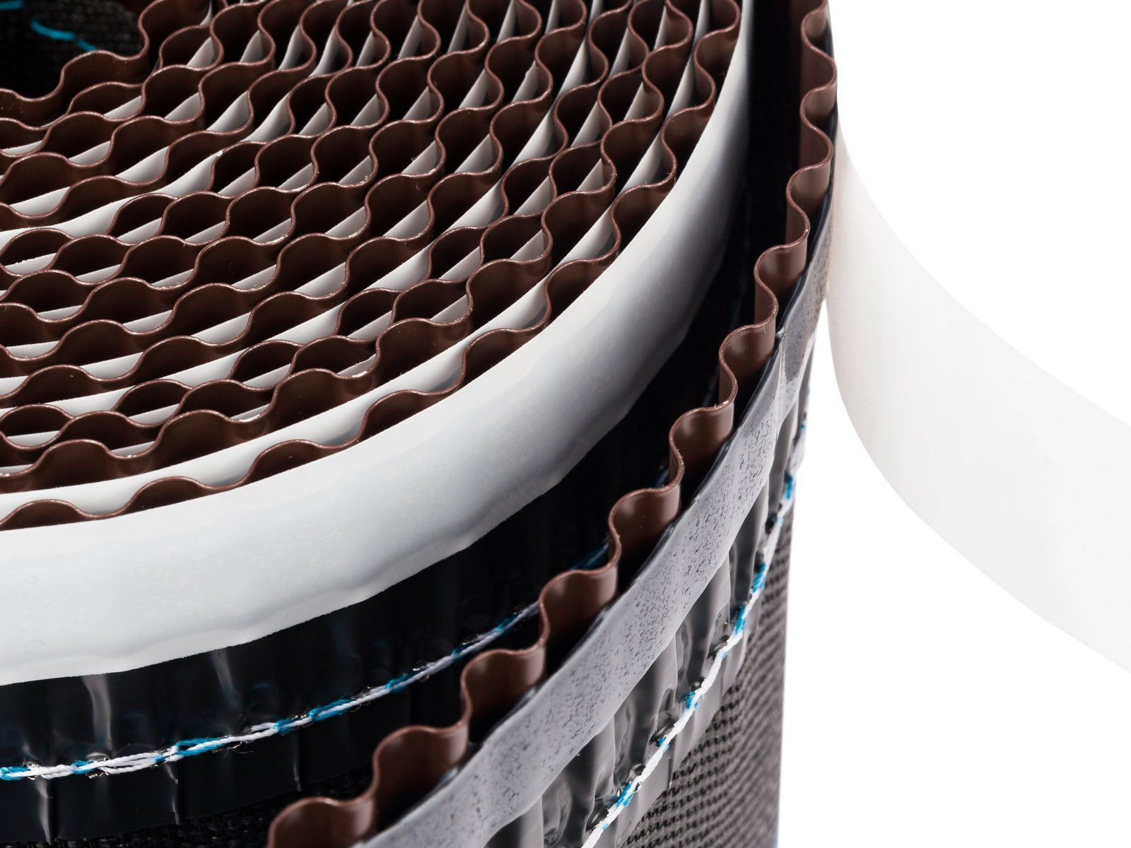 - Schutz vor Feuchtigkeit und Schmutz: Das Band schützt das Dach wirksam gegen das Eindringen von Regen, Schnee, Feuchtigkeit, Staub und Insekten. Die hervorragende Belüftung des inneren Teils des Bandes verhindert die Ansammlung von Wasserdampf und verlängert so die Lebensdauer des Daches.