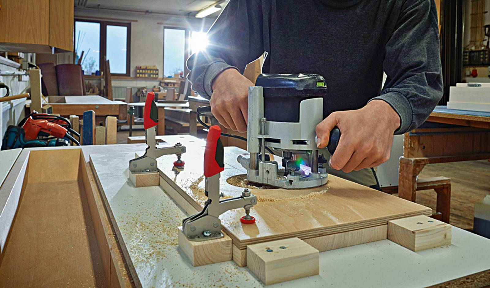 Auch empfindliche Werkstücke mit z.B. furnierter oder lackierter Oberfläche lassen sich schonend spannen: