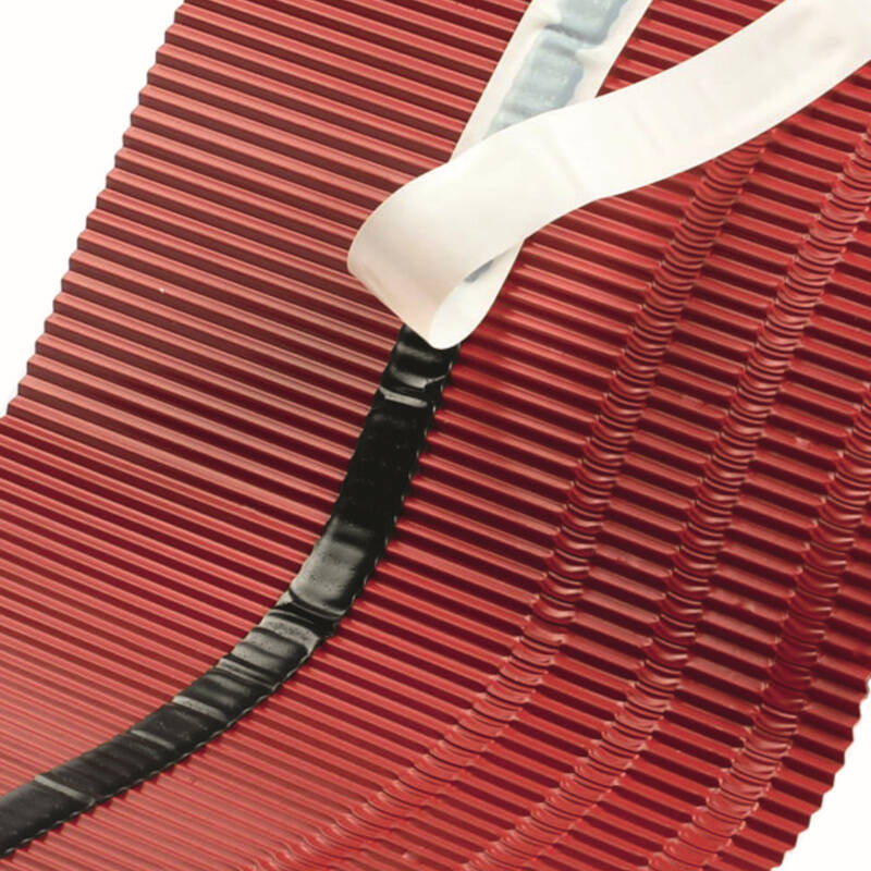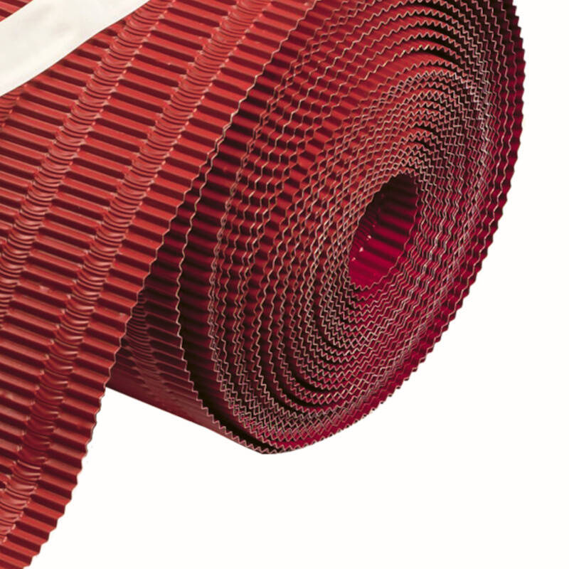 - 0,14 mm starkes plisiertes Aluminiumblech mit Polyesterfarbe beschichtet und mit PE-Schutzfolie versehen, die vor Montagebeginn entfernt werden muss. Die oberseite besitzt einen Butyl Klebestreifen für die einfache und dichte Befestigung der Unterdeckbahn.