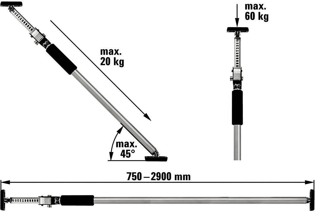 - Bis zu maximal 150 kg belastbar bei komplett eingefahrener Teleskopstange