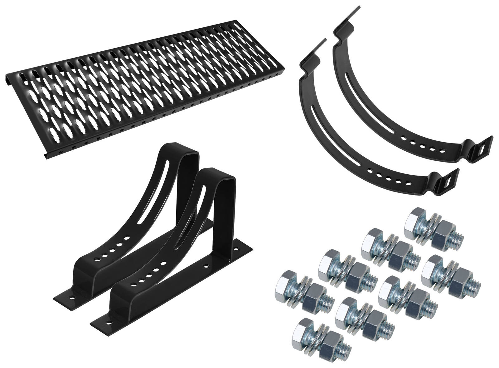 Der Trittrost wird mittels Schrauben M8x20(2) an den Bügel montiert, an den dafür vorhergesehenen Stellen.