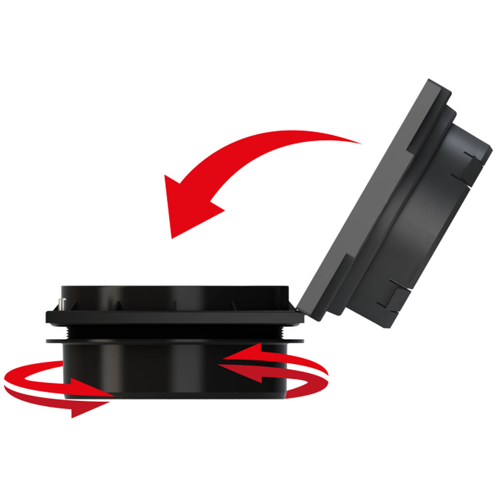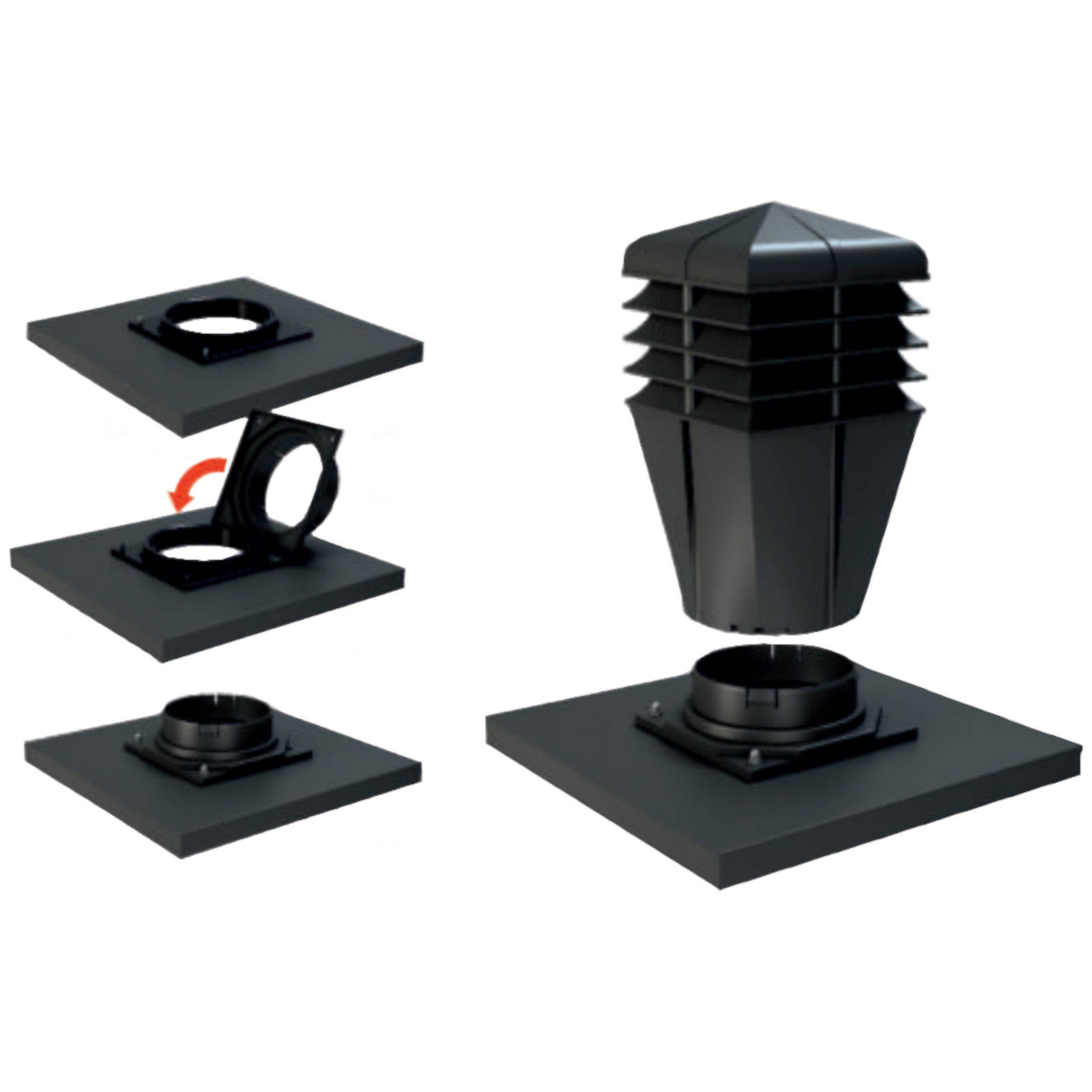 • Einbausockel - für Montage von Alfawent PRO Regenhaube direkt auf dem Schornsteinkopf mit Anschlussmöglichkeit für ein Lüftungsrohr. Es gibt ein Rohr an der Unterseite, das es ermöglicht, es an Leitungen mit einem Durchmesser von Ø160 anzuschließen.