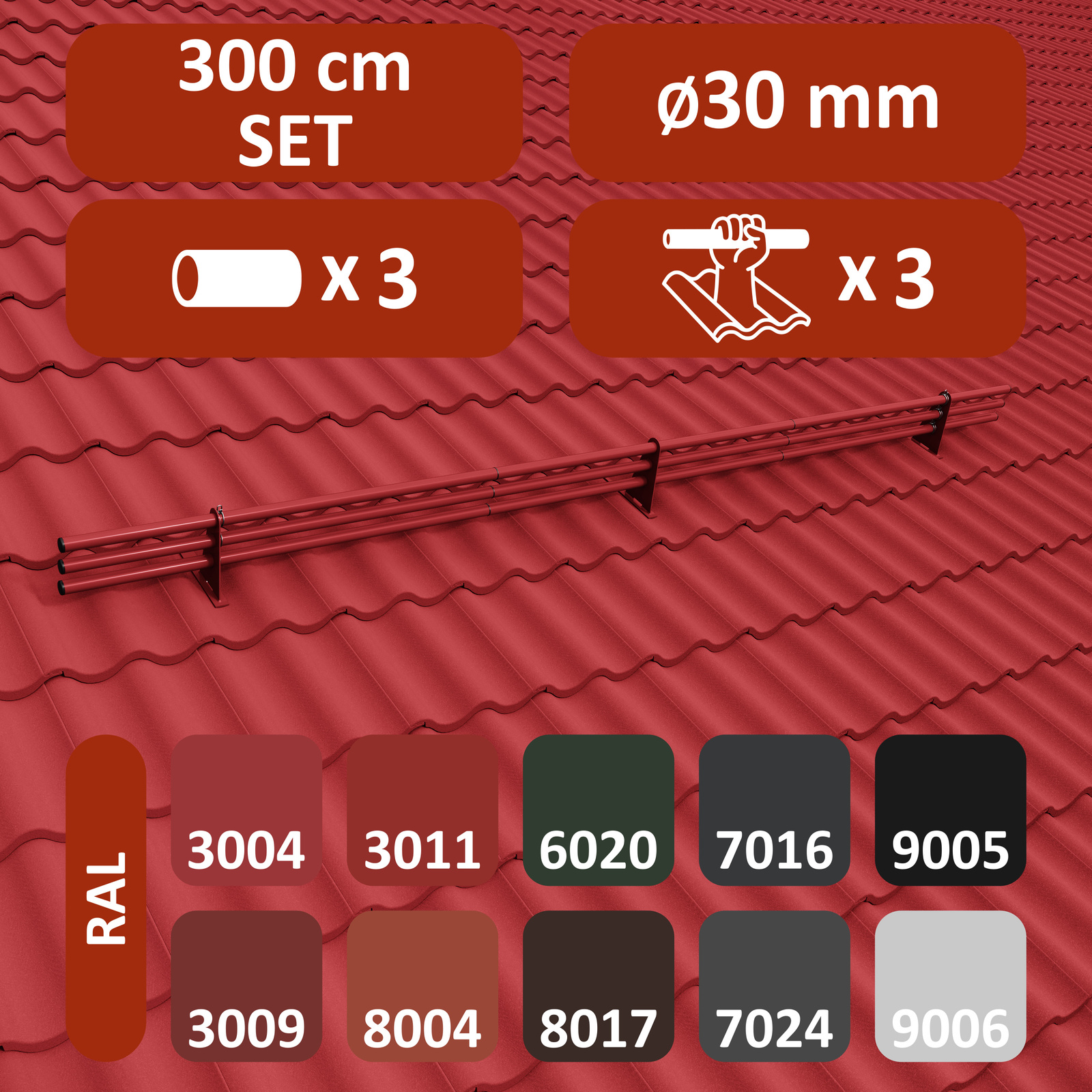 • Komplettes 3-Rohre Schneefangrohr für Dachsteine, Dachziegel und Biberschwanzziegel