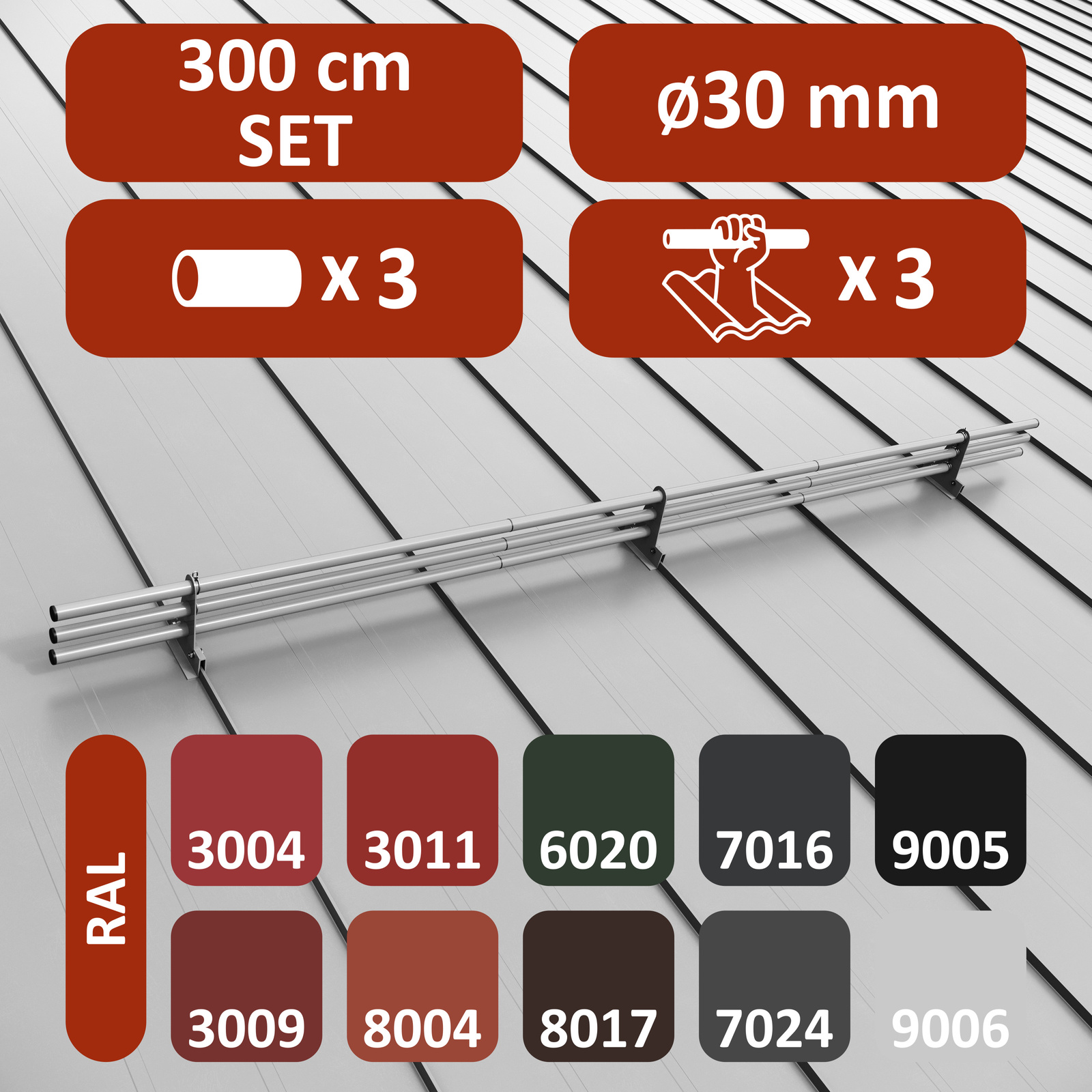 - 9 Schneefangrohre je 1,0 m (100 cm) – Gesamtlänge 3,00 m