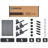 - 6 Abdeckkappen – 6 Halteschellen (Stopper) – 6 Muffen (Rohrverbinder)