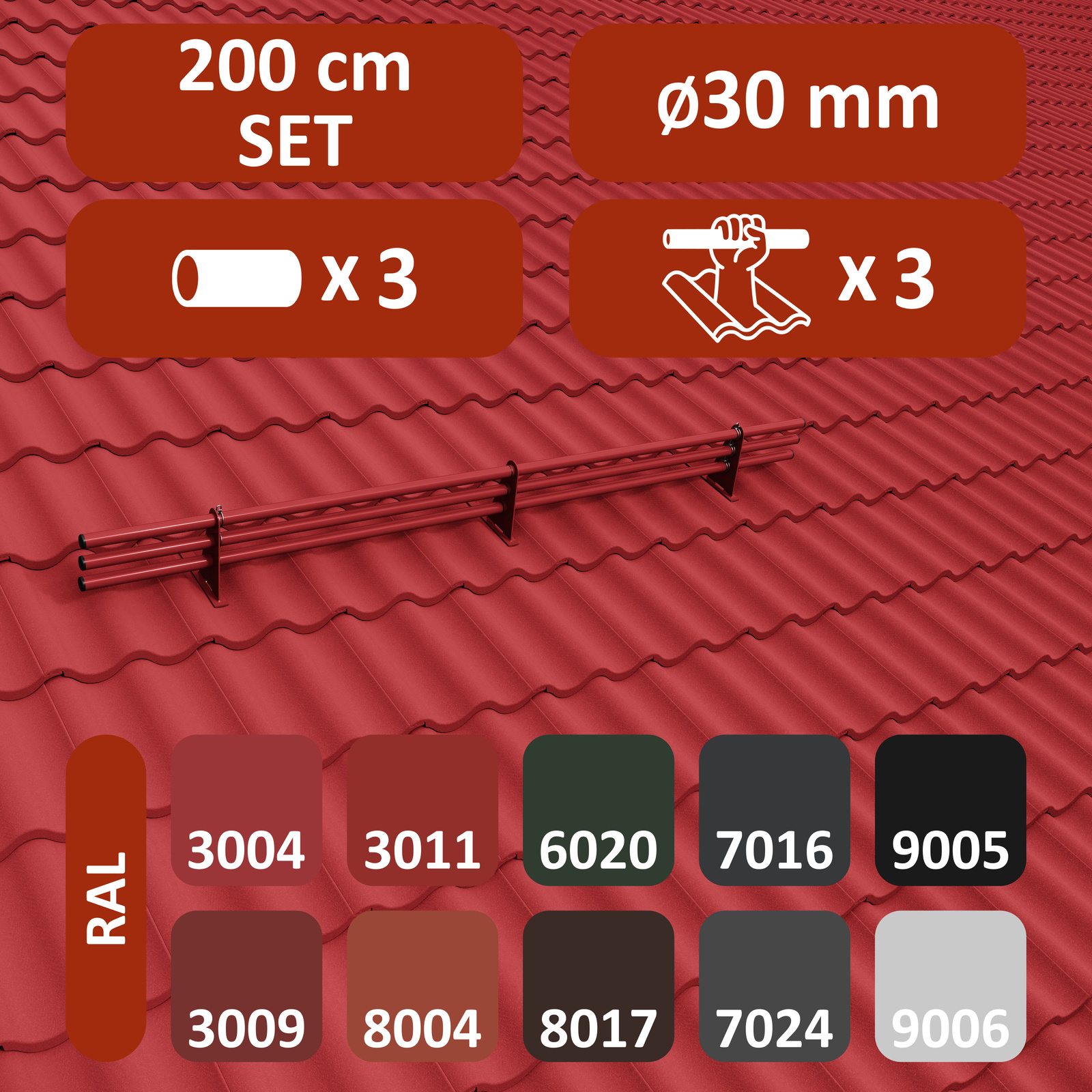 Komplettes 3-Rohre Schneefangrohr für Dachsteine, Dachziegel und Biberschwanzziegel
