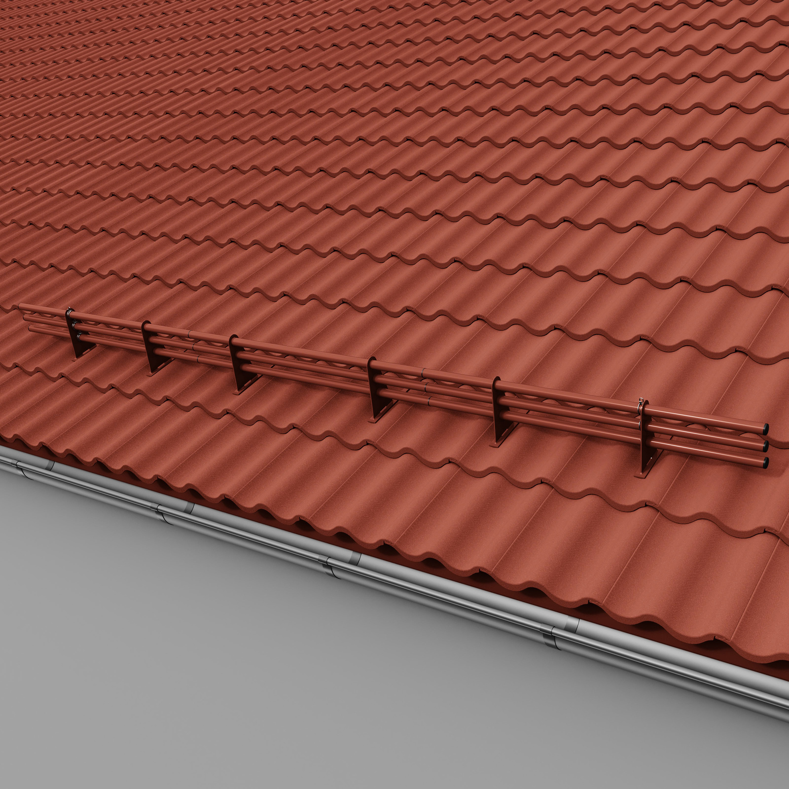 - 3, 4, 5 oder 6 Uni-Stützen (Schneefangstützen) zum Einhängen in Dachziegel/Biberschwanz