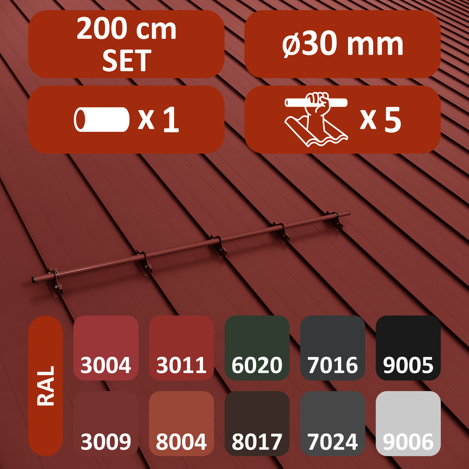 - Schneefallschutz / Dachlawinenschutz – das Schneefangrohr-System (Schneefangrohr Set, Komplettes Schneefang Set) hält Schnee & Eis kontrolliert zurück und schützt Dacheindeckung, Umfeld und Rinnensystem.