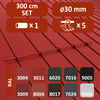 • Verzinkter Stahlrohr 30 mm Außendurchmesser, 4 mm starkes feuer verzinktes Eisen (Halterungen). Erhältlich in pulverbeschichteter Ausführung, in 10 Farben und in den Längen 200 cm und 300 cm.