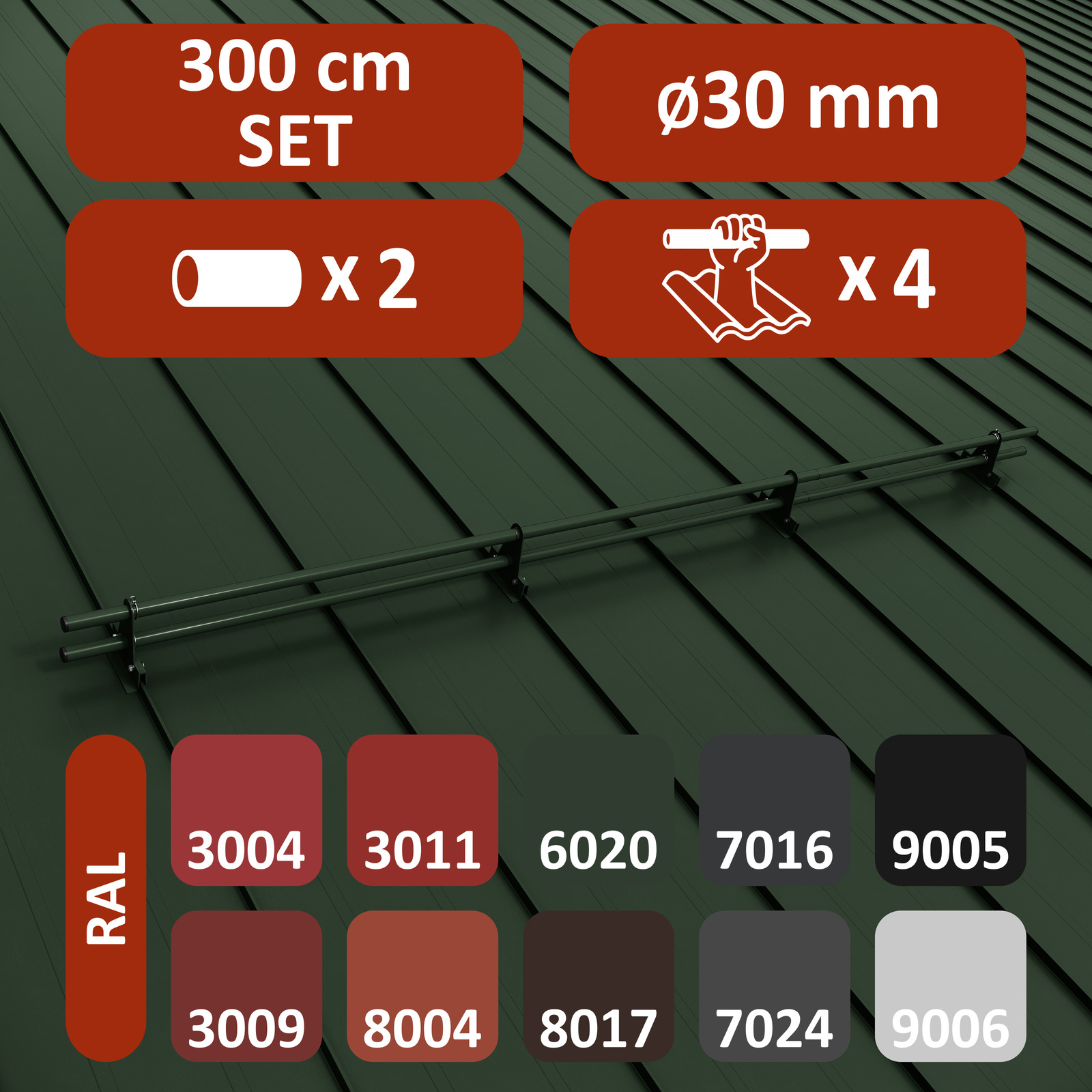 • Komplettes 2-Rohre Schneefangrohr für Stehfalzdächer (Doppel-/Winkelstehfalz, Klick-/Snapfalz)