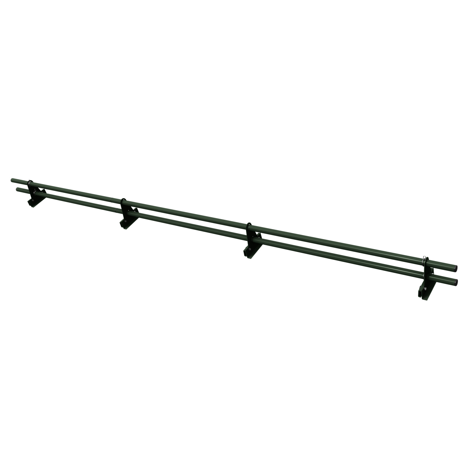 • Verzinkter Stahlrohr 30 mm Außendurchmesser, 4 mm starkes feuer verzinktes Eisen (Halterungen). Erhältlich in pulverbeschichteter Ausführung, in 10 Farben und in den Längen 200 cm und 300 cm.