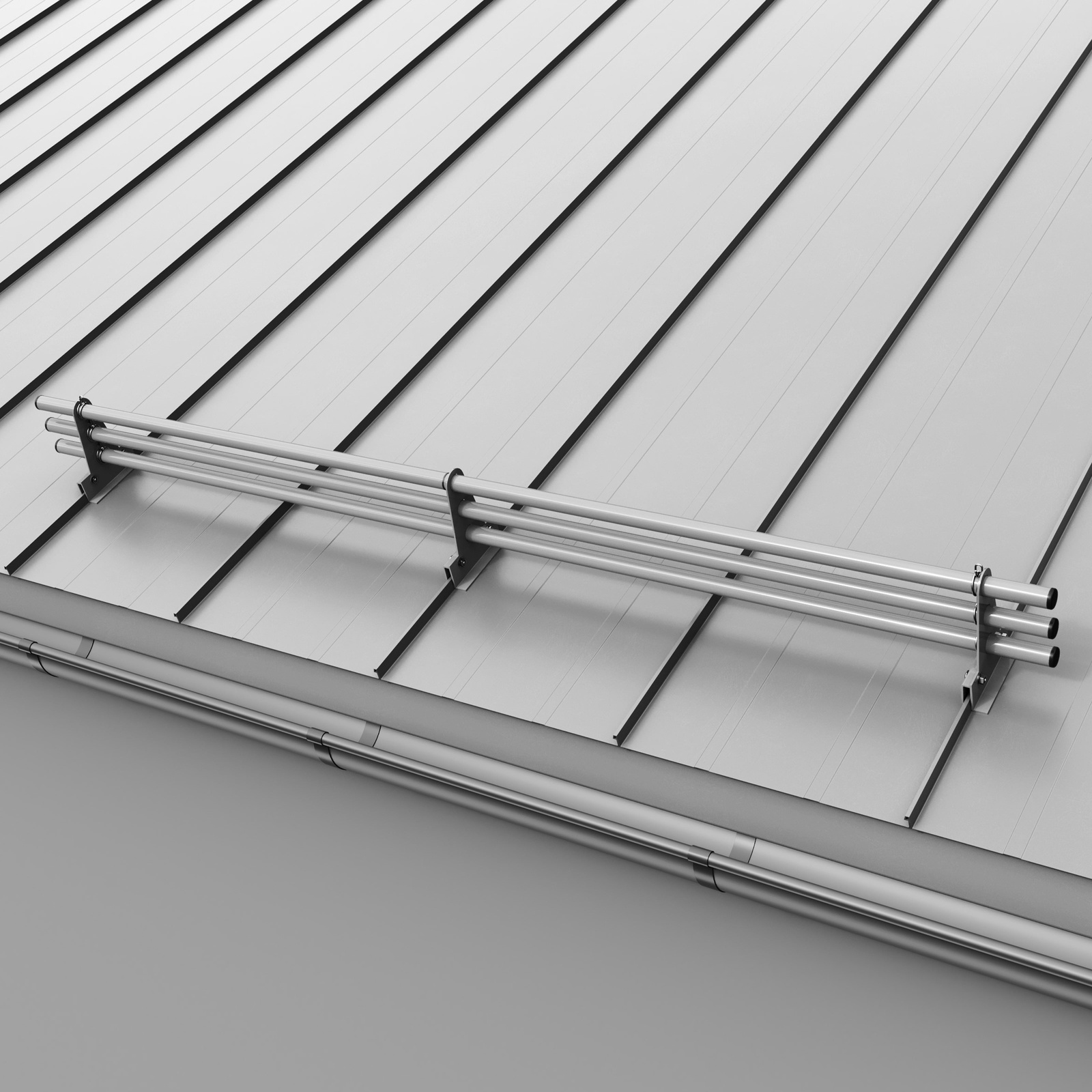- Montage am Stehfalz – Falzklemmen ohne Bohren, dachhautschonend; Reihenaufbau ein-/zwei-/dreireihig, endlos verlängerbar.