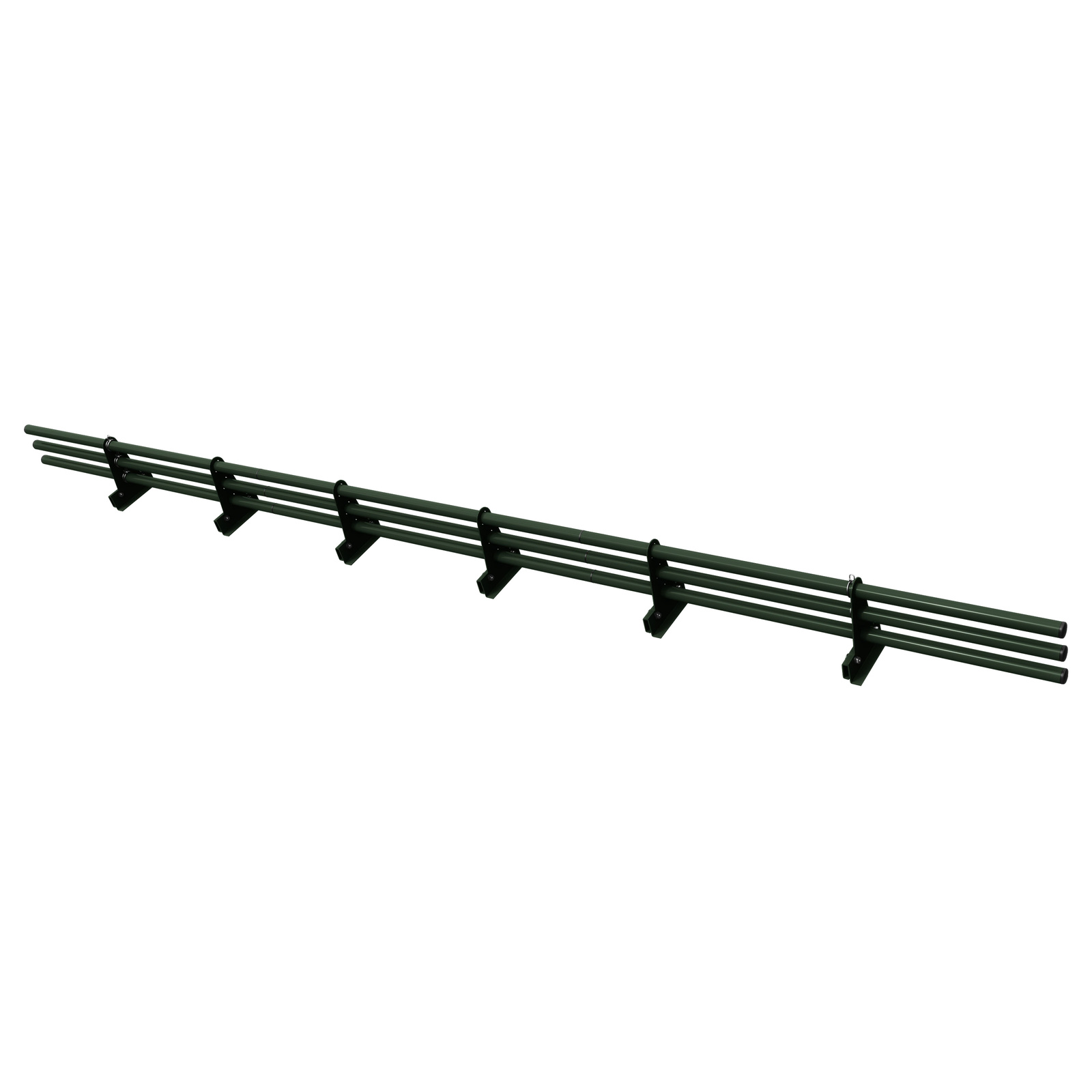 • Verzinkter Stahlrohr 30 mm Außendurchmesser, 4 mm starkes feuer verzinktes Eisen (Halterungen). Erhältlich in pulverbeschichteter Ausführung, in 10 Farben und in den Längen 200 cm und 300 cm.