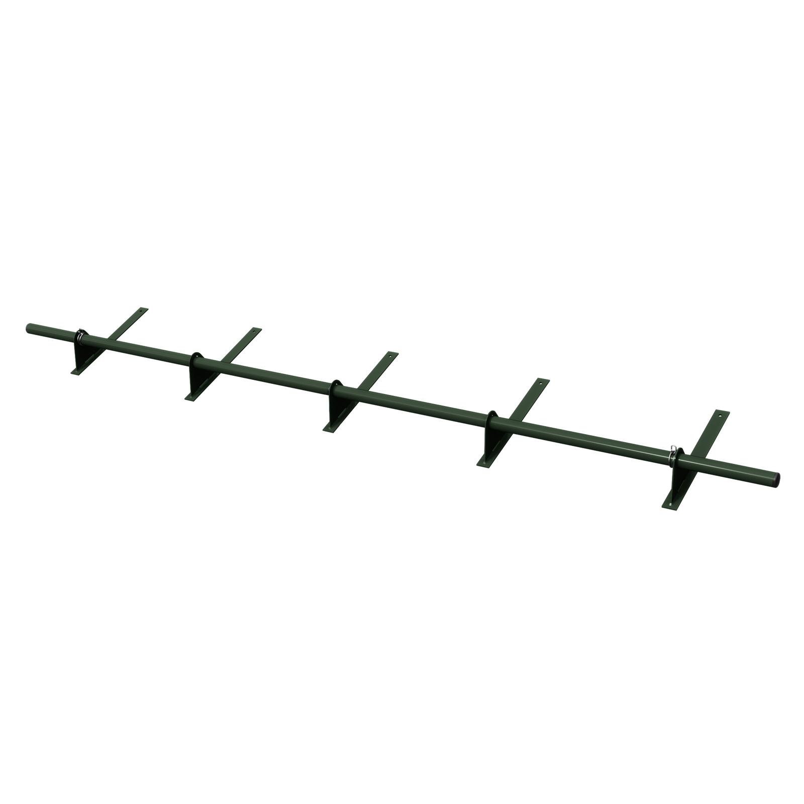 • Verzinkter Stahlrohr 30 mm Außendurchmesser, 4 mm starkes feuer verzinktes Eisen (Halterungen). Erhältlich in pulverbeschichteter Ausführung, in 10 Farben und in den Längen 200 cm und 300 cm.
