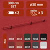 • Verzinkter Stahlrohr 30 mm Außendurchmesser, 4 mm starkes feuer verzinktes Eisen (Halterungen). Erhältlich in pulverbeschichteter Ausführung, in 10 Farben und in den Längen 200 cm und 300 cm.