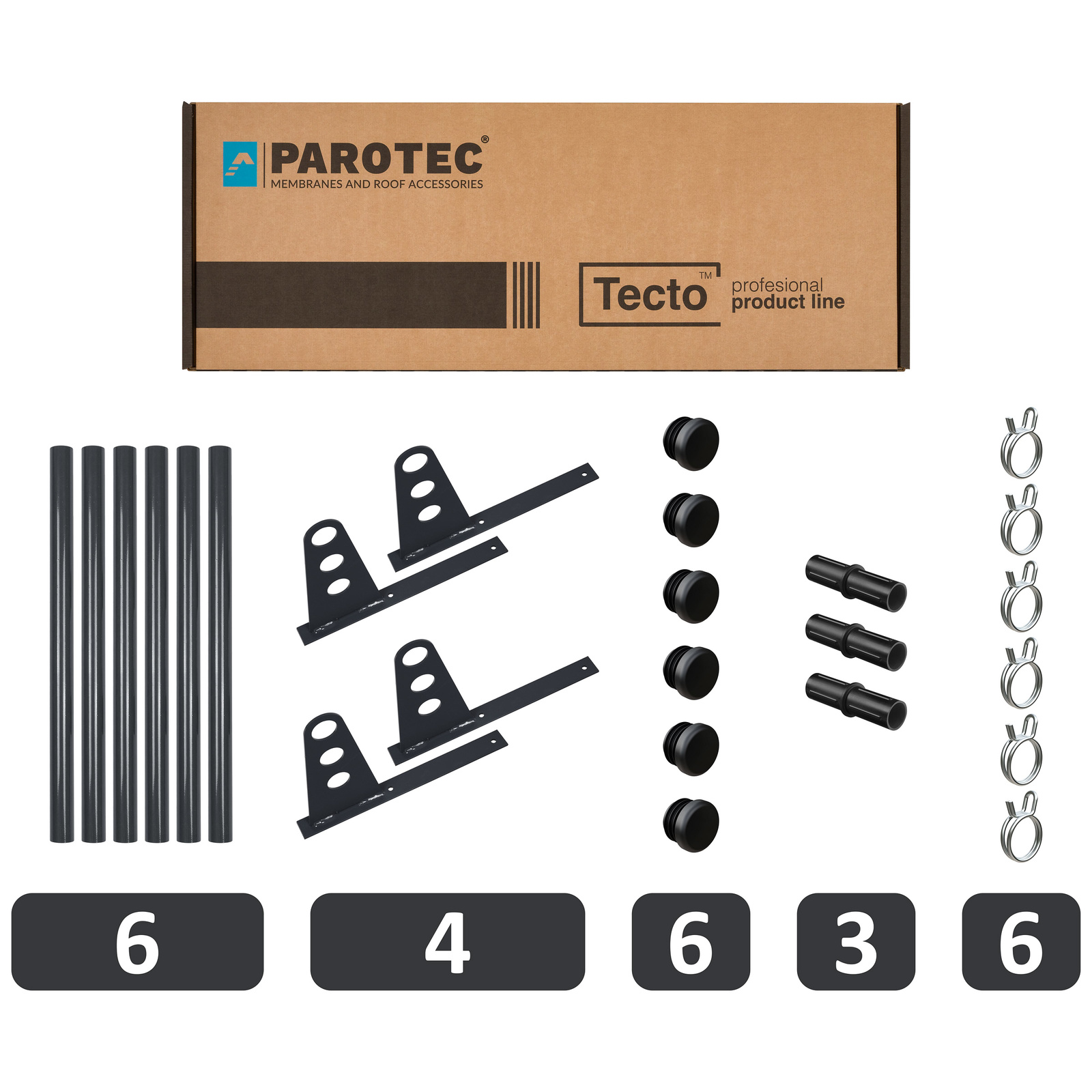 - Komplettes Montageset – alle erforderlichen Montageelemente (ohne Werkzeuge), Lieferung im Schutzkarton, mit Dachdeckern entwickelter Montageprozess.