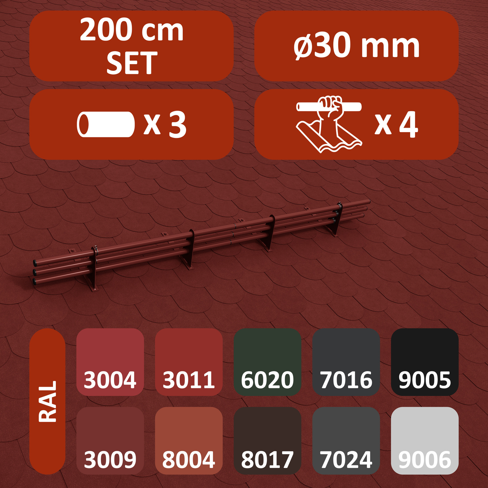 Komplettes 3-Rohre Schneefangrohr für Trapezblech, Dachpappe/Bitumen, Bitumenschindeln (Shingles), EPDM/PVC