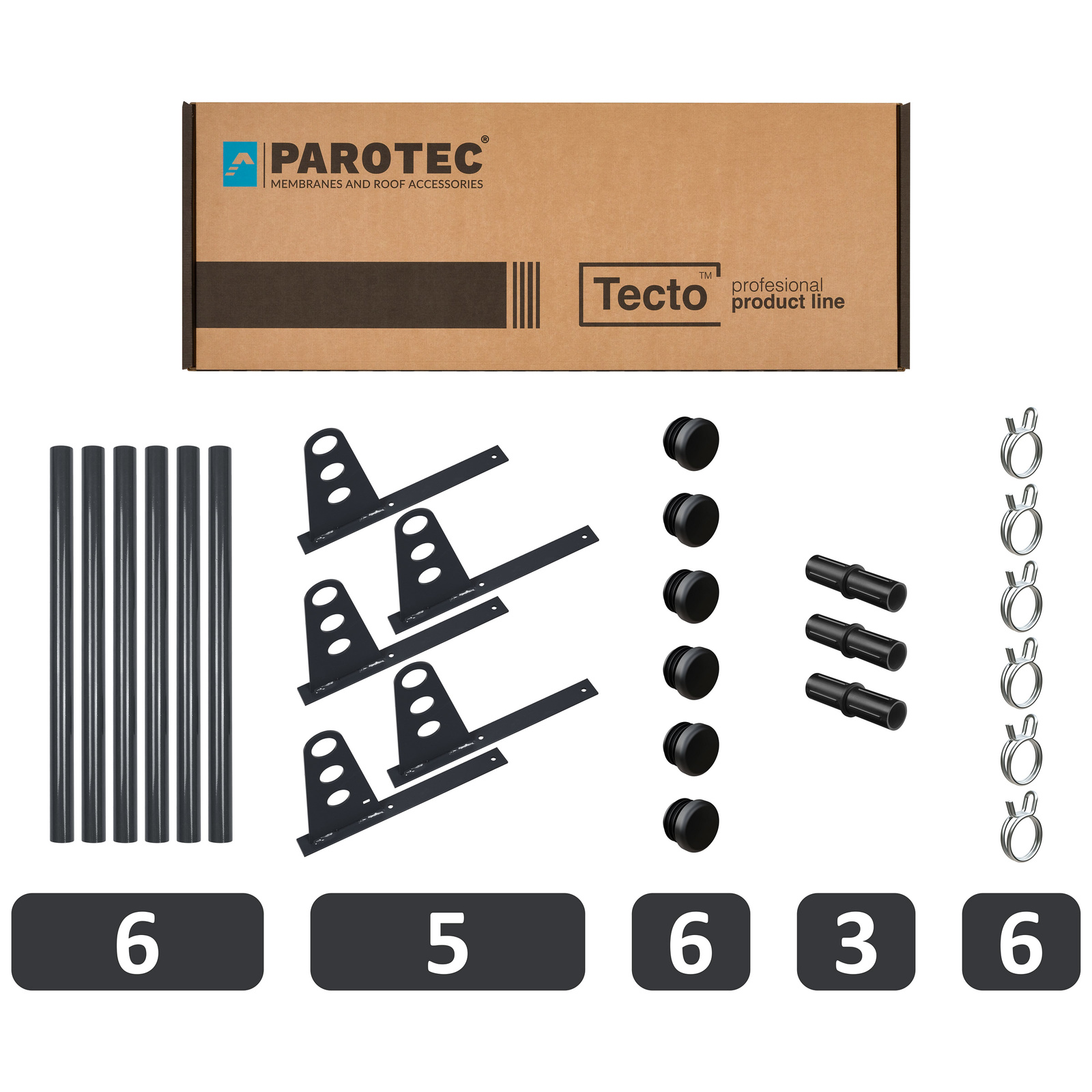 • Komplettes Montageset – alle erforderlichen Montageelemente (ohne Werkzeuge), Lieferung im Schutzkarton, mit Dachdeckern entwickelter Montageprozess.