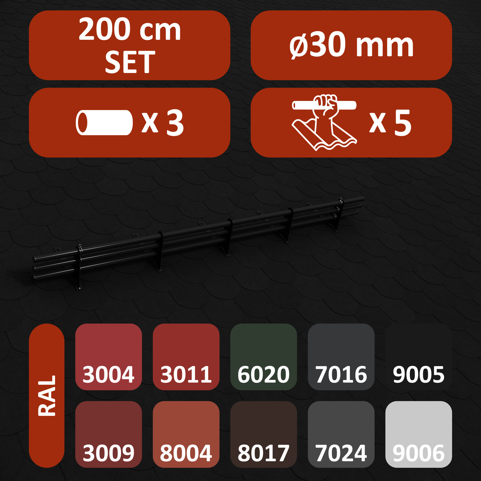 Komplettes 3-Rohre Schneefangrohr für Trapezblech, Dachpappe/Bitumen, Bitumenschindeln (Shingles), EPDM/PVC