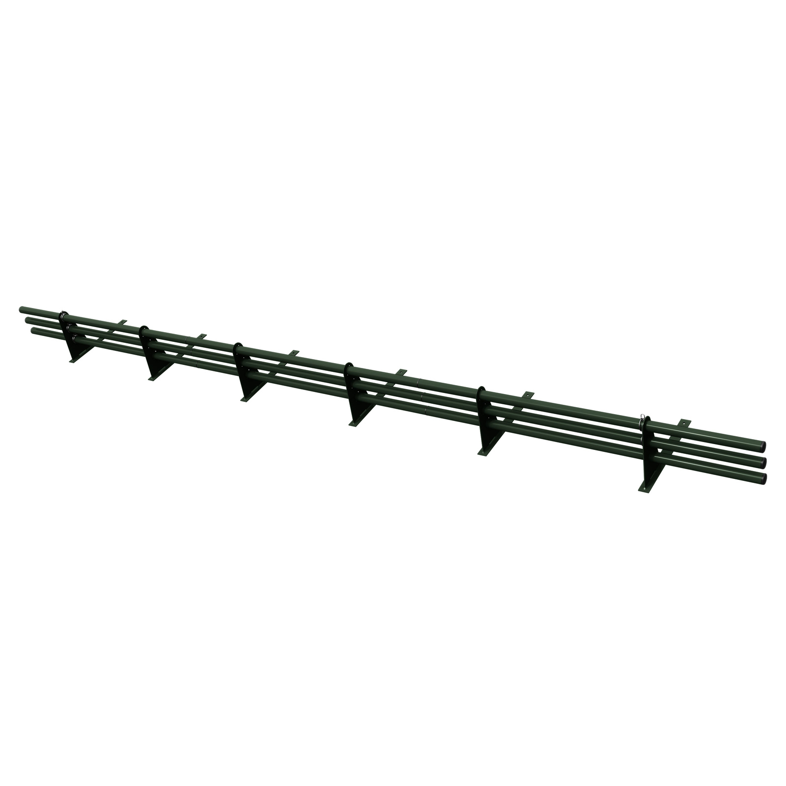 • Verzinkter Stahlrohr 30 mm Außendurchmesser, 4 mm starkes feuer verzinktes Eisen (Halterungen). Erhältlich in pulverbeschichteter Ausführung, in 10 Farben und in den Längen 200 cm und 300 cm.